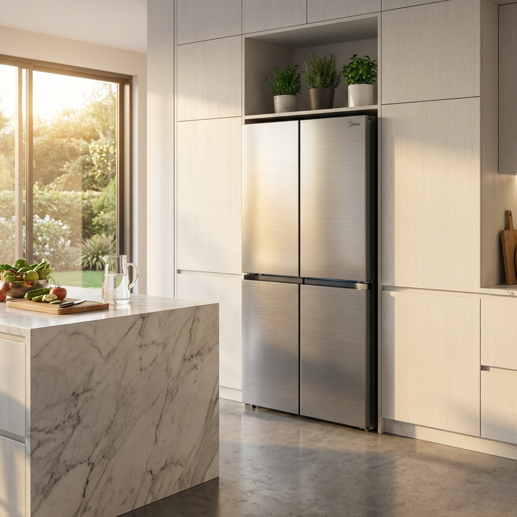 ثلاجة Midea MDRF632 FIE28 كواترو إنفرتر تجمع بين التصميم العصري والأداء العالي بفضل نظام الأربعة أبواب الذي يوفر مرونة مثالية في تنظيم الأطعمة. بسعة 490 لتر وتقنية Quattro Inverter، تمنحك تبريدًا مستقرًا مع استهلاك طاقة أقل وتشغيل هادئ.