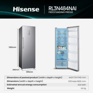 ثلاجة Hisense RL3N484NAI باب واحد – سعة 355 لتر مع تقنية Total No Frost وMulti Air Flow