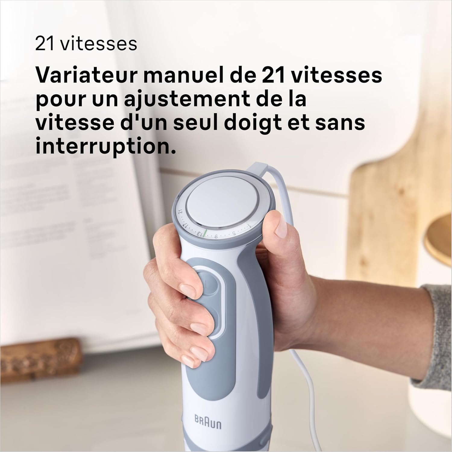ارتقِ بتحضير الوصفات اليومية ومهام الخلط في مطبخك مع خلاط براون MultiQuick MQ5200WH اليدوي، الذي يجمع بين القوة، الأداء الذكي والراحة في الاستخدام. بفضل المحرك القوي 1000 واط ونظام 21 سرعة ذكية + Turbo، يتيح لك هذا الخلاط تحكماً دقيقاً في كل وصفة—سواء كانت خلطات خفيفة كالسموذي أو صلصات كثيفة.
