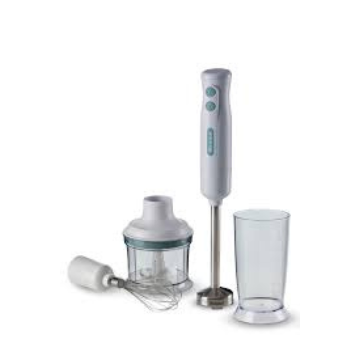 يأتي الجهاز مزوّدًا بقبضة من الستانلس ستيل تمنحك ثباتًا وتحكمًا أفضل أثناء الاستخدام، بالإضافة إلى محضّرة صغيرة لرَشّ أو فرم المكوّنات الصغيرة بسهولة، ورأس خفق لتحضير الكريمة والبيض، وكأس خلط إضافي لتجهيز الكميات المناسبة بسهولة وسرعة. تصميمه الأبيض الأنيق يضفي لمسة من البساطة والعصرية لمطبخك.