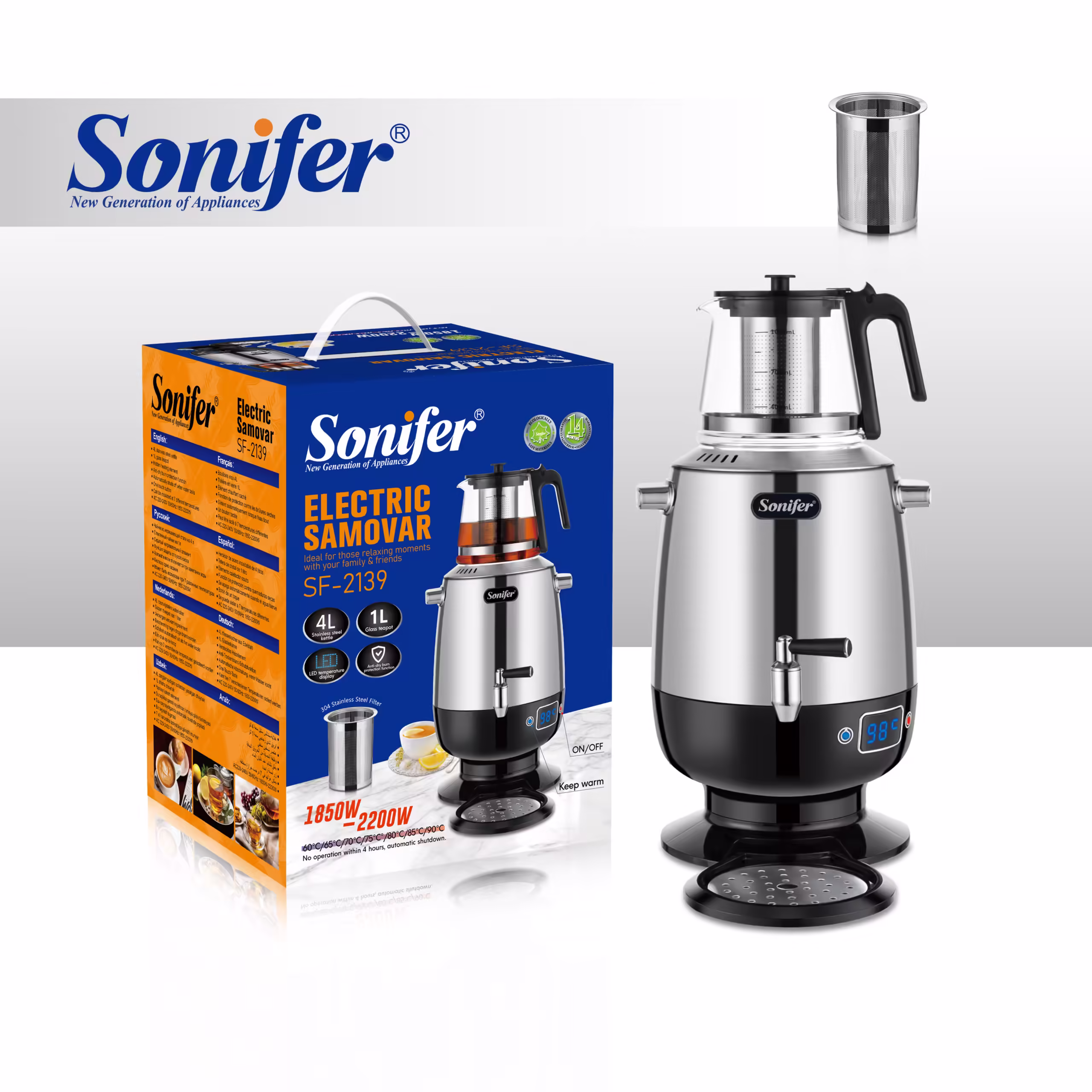 سماور كهربائي Sonifer SF-2139 — سعة 4 لتر + إبريق 1 لتر زجاجي / 7 درجات حرارة