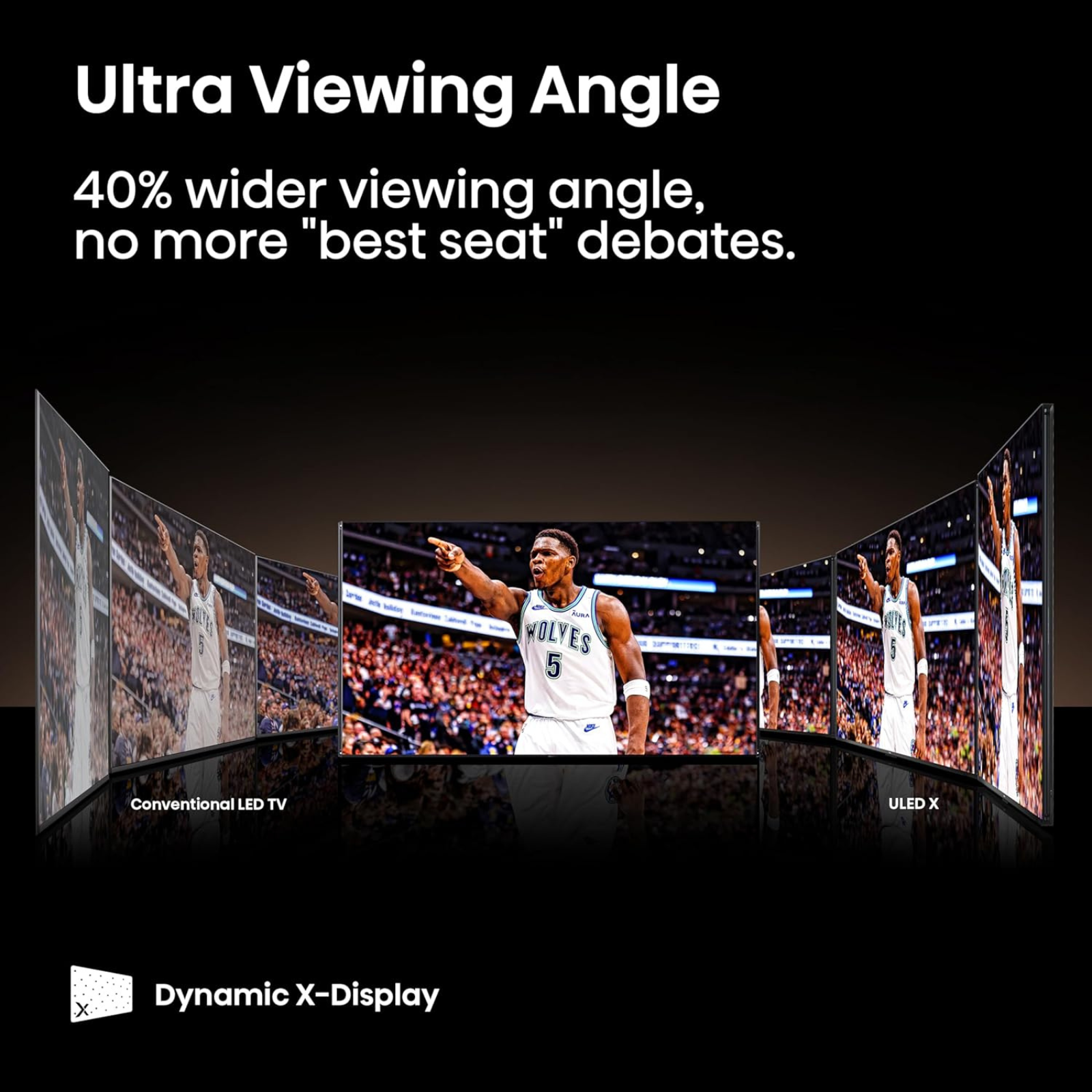 التصميم الأنيق بحواف رفيعة يناسب ديكور أي غرفة معيشة ويمنحك مساحة عرض واسعة لتجربة مشاهدة غامرة.
