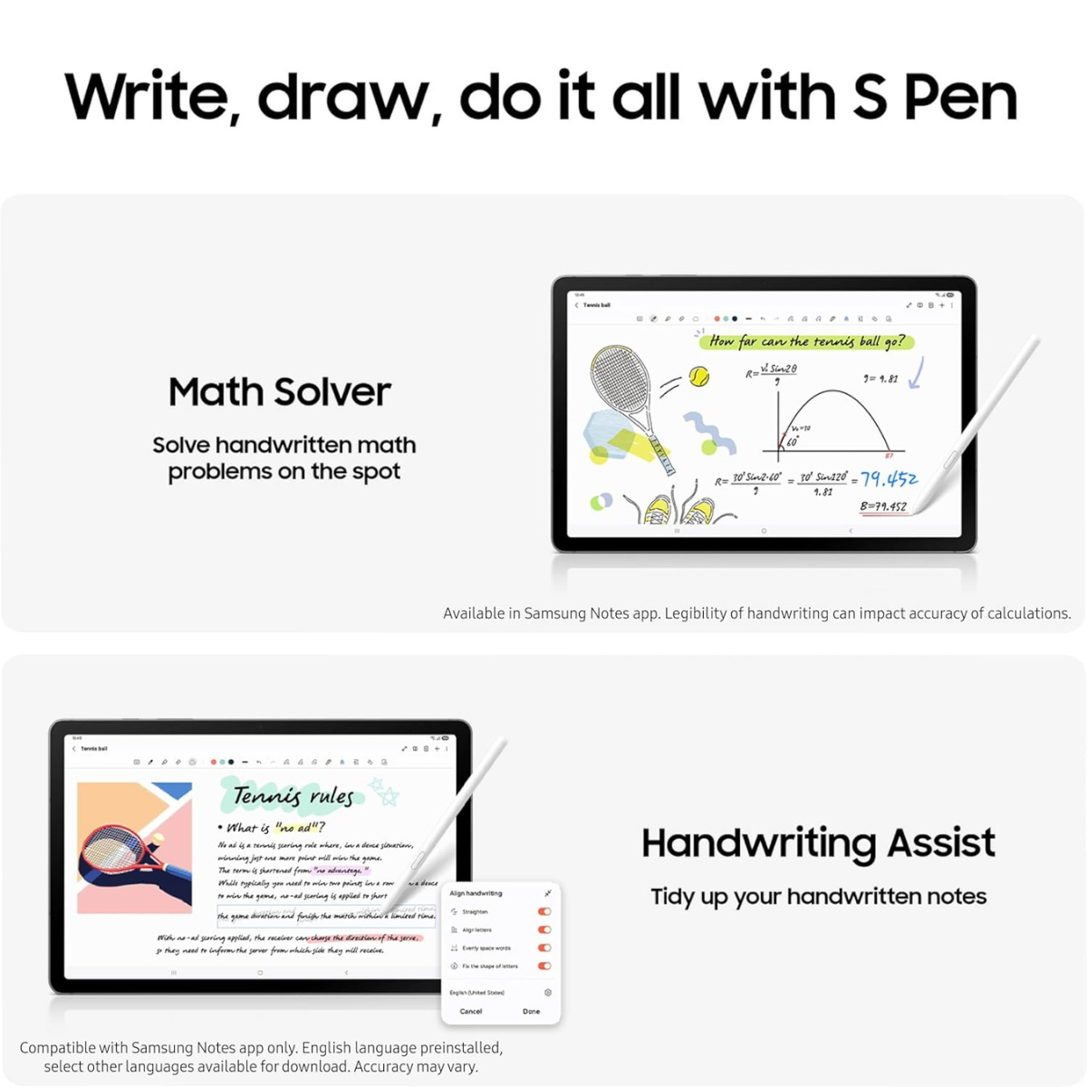 كما يدعم الجهاز قلم S Pen لتدوين الملاحظات والرسم والعمل الإبداعي، مما يجعله خيارًا ممتازًا للطلاب والمبدعين. ومع البطارية الكبيرة 8000mAh يمكنك استخدام الجهاز طوال اليوم دون القلق من نفاد الطاقة.