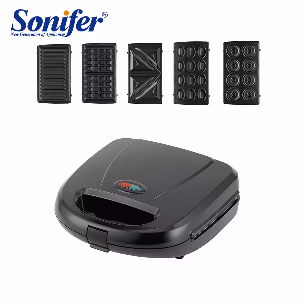 تم تصميم Sonifer SF-6151 لتلبية مختلف احتياجات التحضير اليومي في المنزل، بكيانيّتها 5-في-1 التي تشمل شطائر، غريل، وافل، دونات وغيرها، مع قدرة تشغيل تقريبية تصل إلى 800 واط. مزودة بمقبض بارد اللمس وتصميم مريح، فإنها تجمع بين الأداء والتنوع بأسلوب أنيق وعملي.