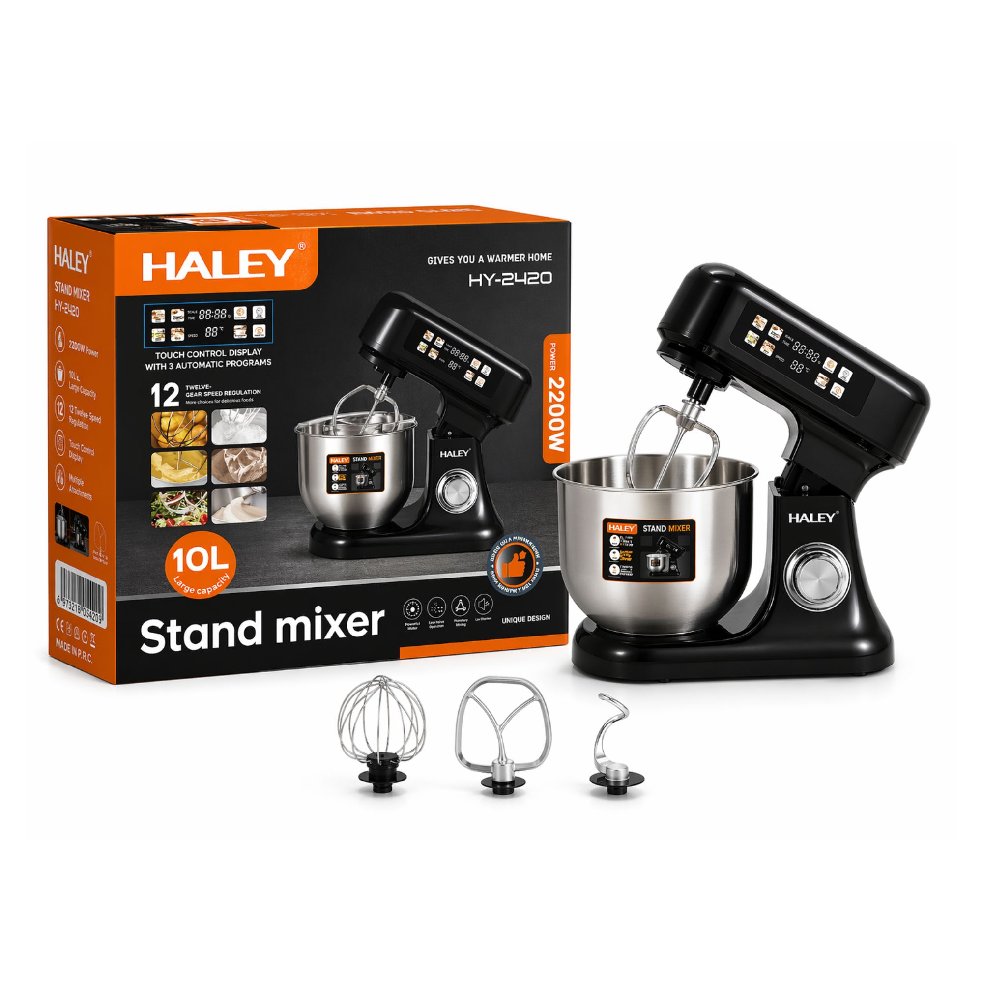 عجانة كهربائية HALEY HY-2420 – سعة 10 لتر – قوة 2200 واط – شاشة لمس – 12 سرعة – خلاط احترافي للمطبخ