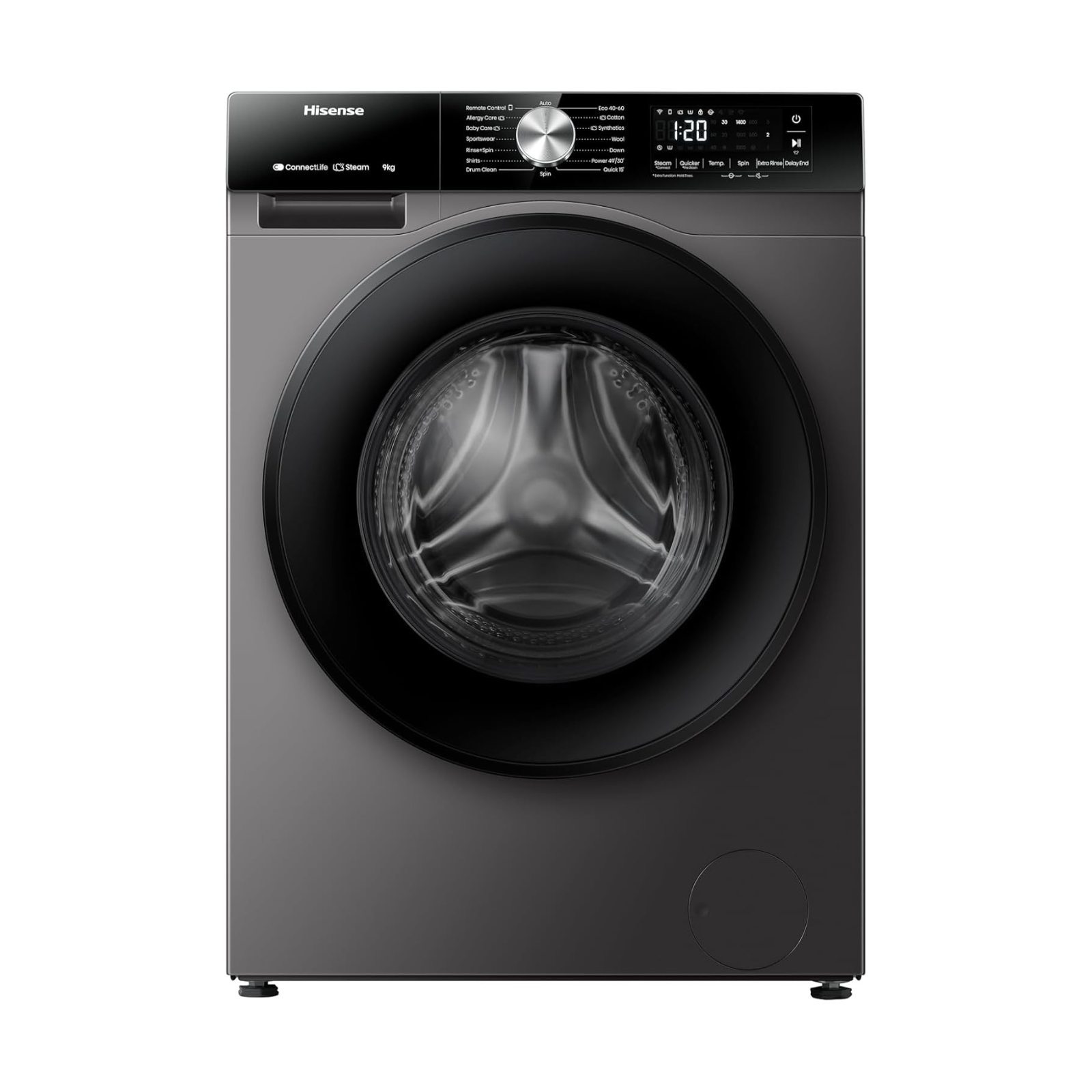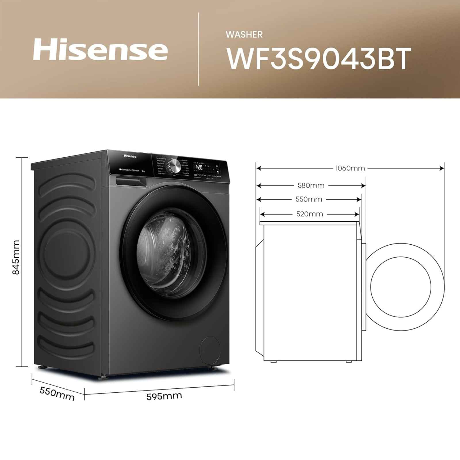 غسالة مع نشافة Hisense تحميل أمامي 10.5 كغ غسيل / 6 كغ تجفيف إنفرتر 1400 دورة – موديل WD3S1043BT لون Titanium Grey