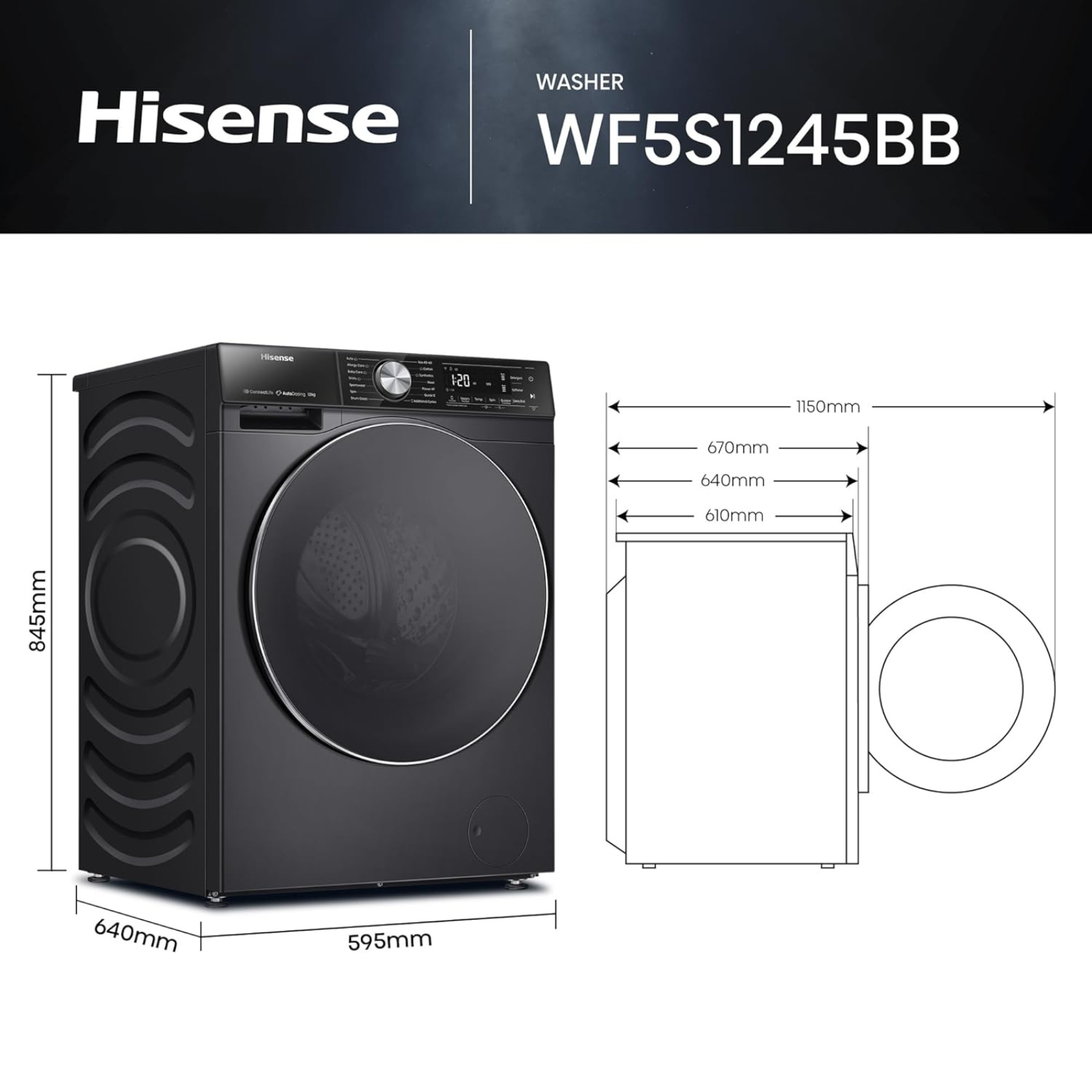 غسالة ملابس Hisense تحميل أمامي 12 كغ إنفرتر 1400 دورة مع WiFi – موديل WF5S1245BB لون Charcoal Black