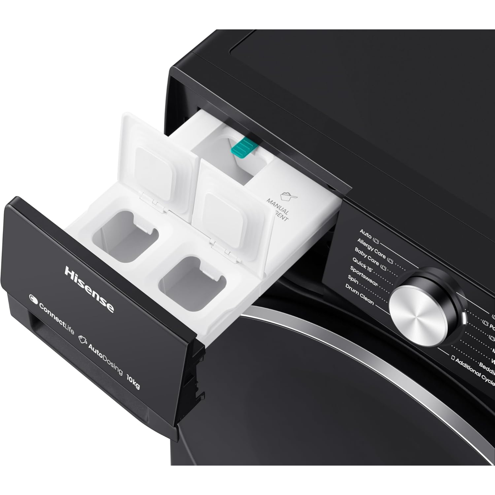 كما تأتي الغسالة بتقنيات ذكية مثل Auto Dosing لتحديد كمية المنظف تلقائيًا، وميزة Smart WiFi (ConnectLife) للتحكم بالجهاز ومتابعة دورات الغسيل من الهاتف. بالإضافة إلى تقنية Hygiene Steam التي تساعد على إزالة البكتيريا والمواد المسببة للحساسية من الملابس.