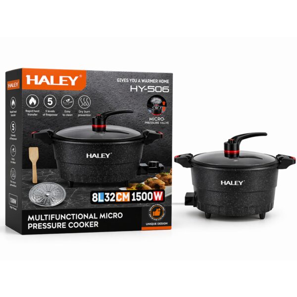 طنجرة ضغط كهربائية متعددة الاستخدام HALEY موديل HY-506 – سعة 8 لتر – قوة 1500 واط – طلاء غير لاصق – تحكم بالحرارة