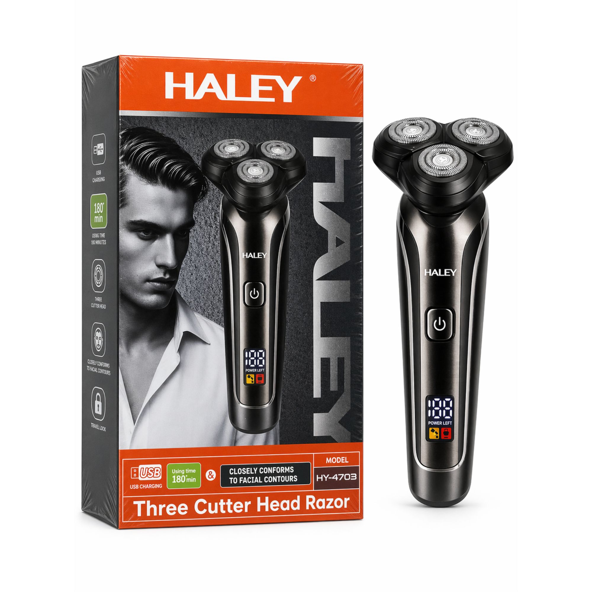 ماكينة حلاقة كهربائية HALEY موديل HY-4703 – 3 رؤوس حلاقة – شاشة رقمية – شحن USB – بطارية 1200mAh