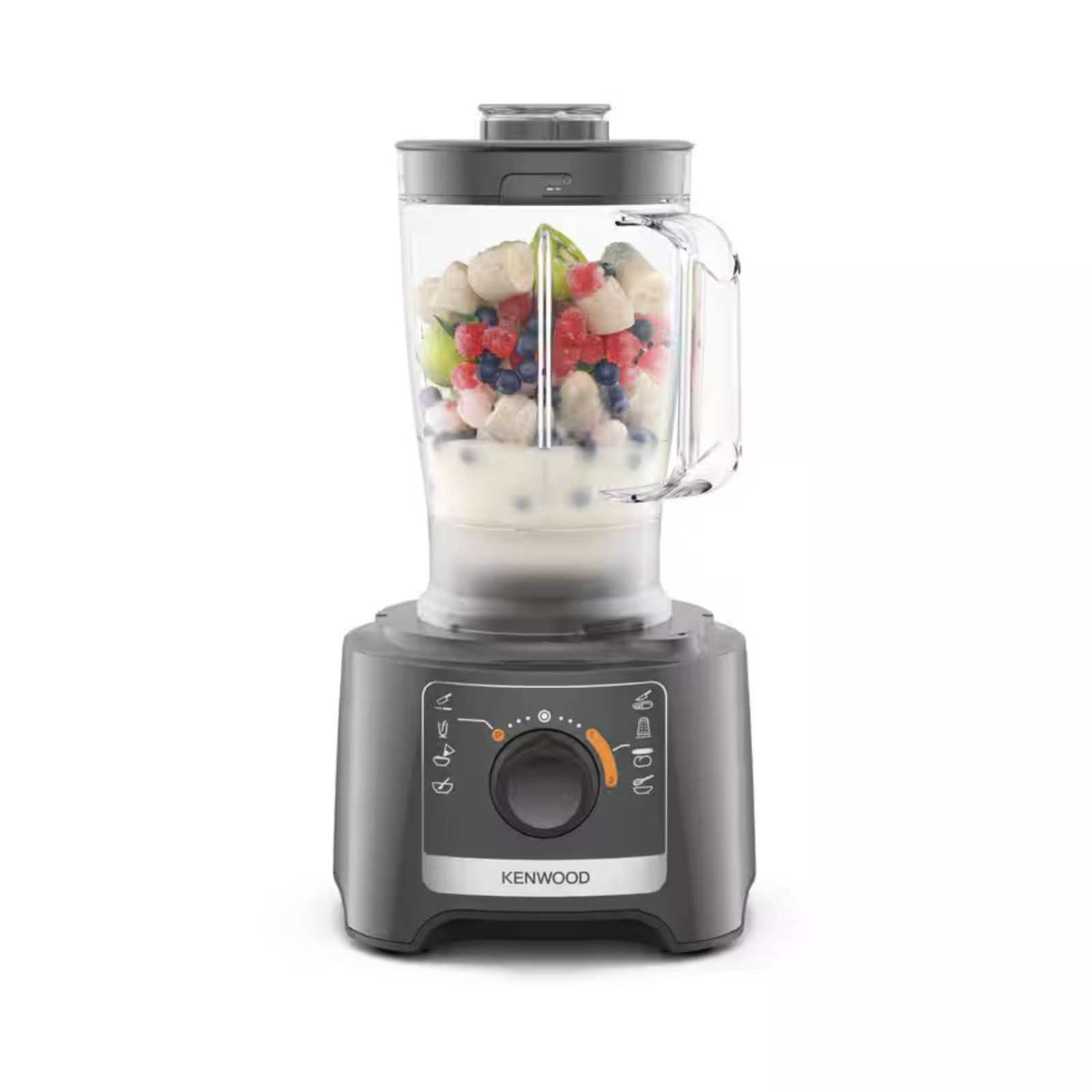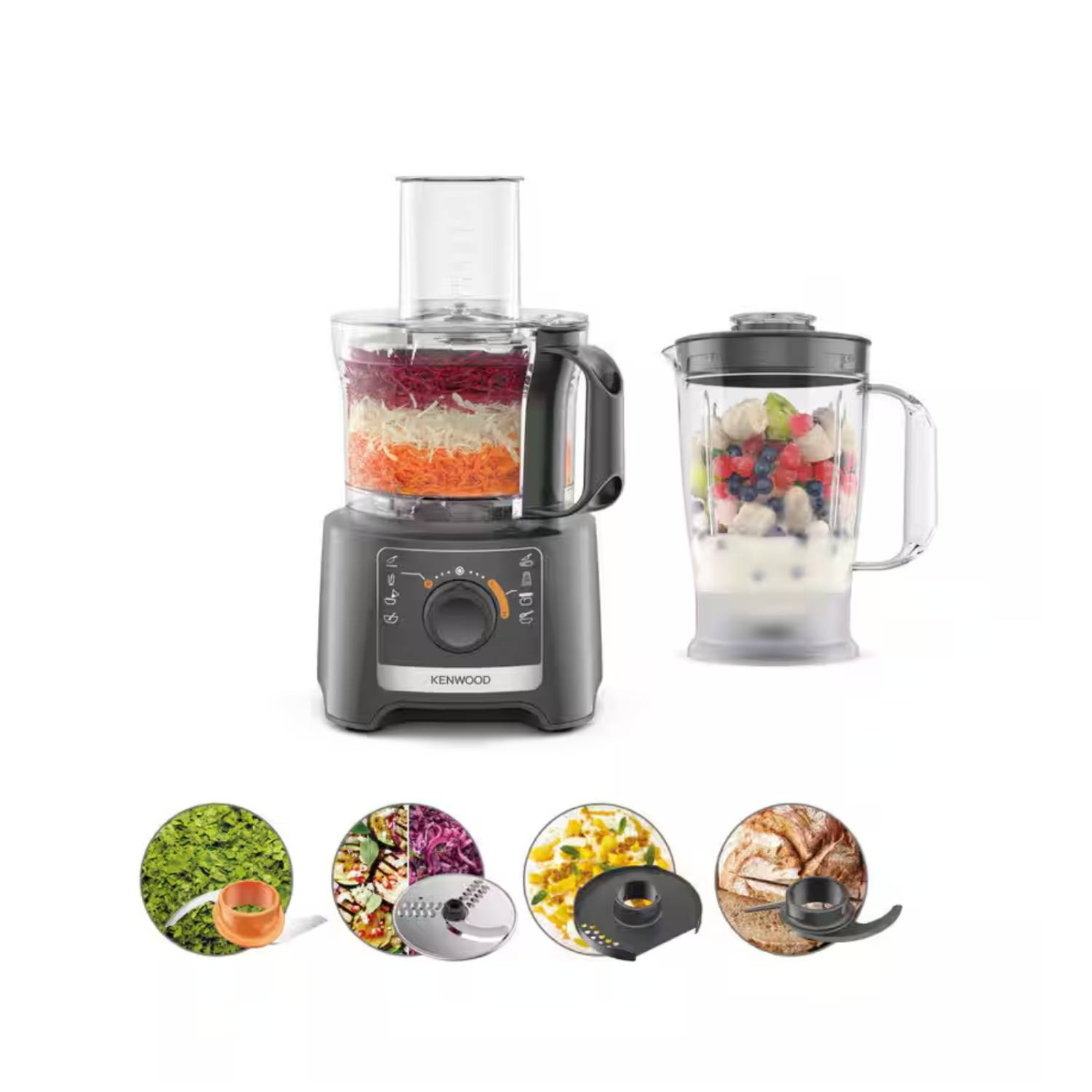 محضرة طعام كينوود 750واط -حوض 1.2 ليتر خلاط فواكه زجاج 1.8 ليتر – عصارة حمضيات مطحنة بن ملحق صناعة المايونيز و الكريمة – 3 شفرات تقطيع برش فرم | FDP05.80GY