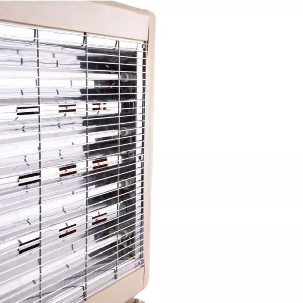 مدفأة كوارتز كهربائية Lexical LQH-8001 بقوة 1000 واط، 4 عناصر تسخين، مفاتيح أمان، وتصميم محمول. مثالية لتدفئة الغرف والمكاتب بسرعة وكفاءة.