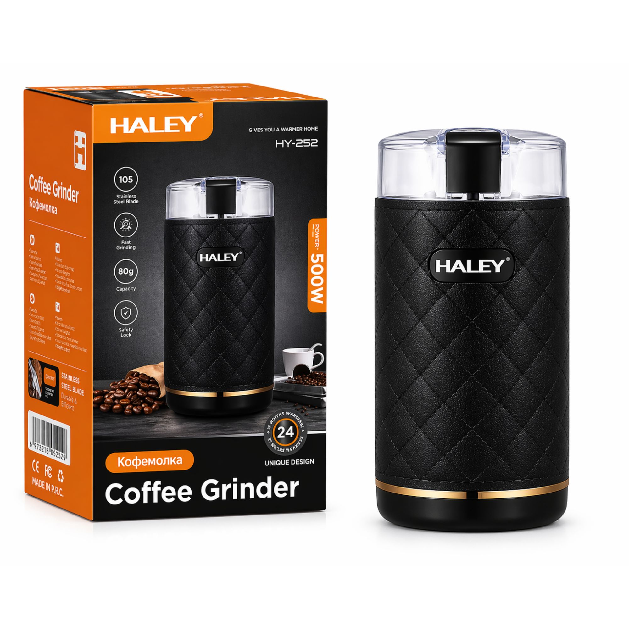 مطحنة قهوة HALEY HY-2112 – قوة 500 واط – سعة 50 غرام – شفرات مزدوجة – طحن سريع خلال 10 ثواني – نظام أمان