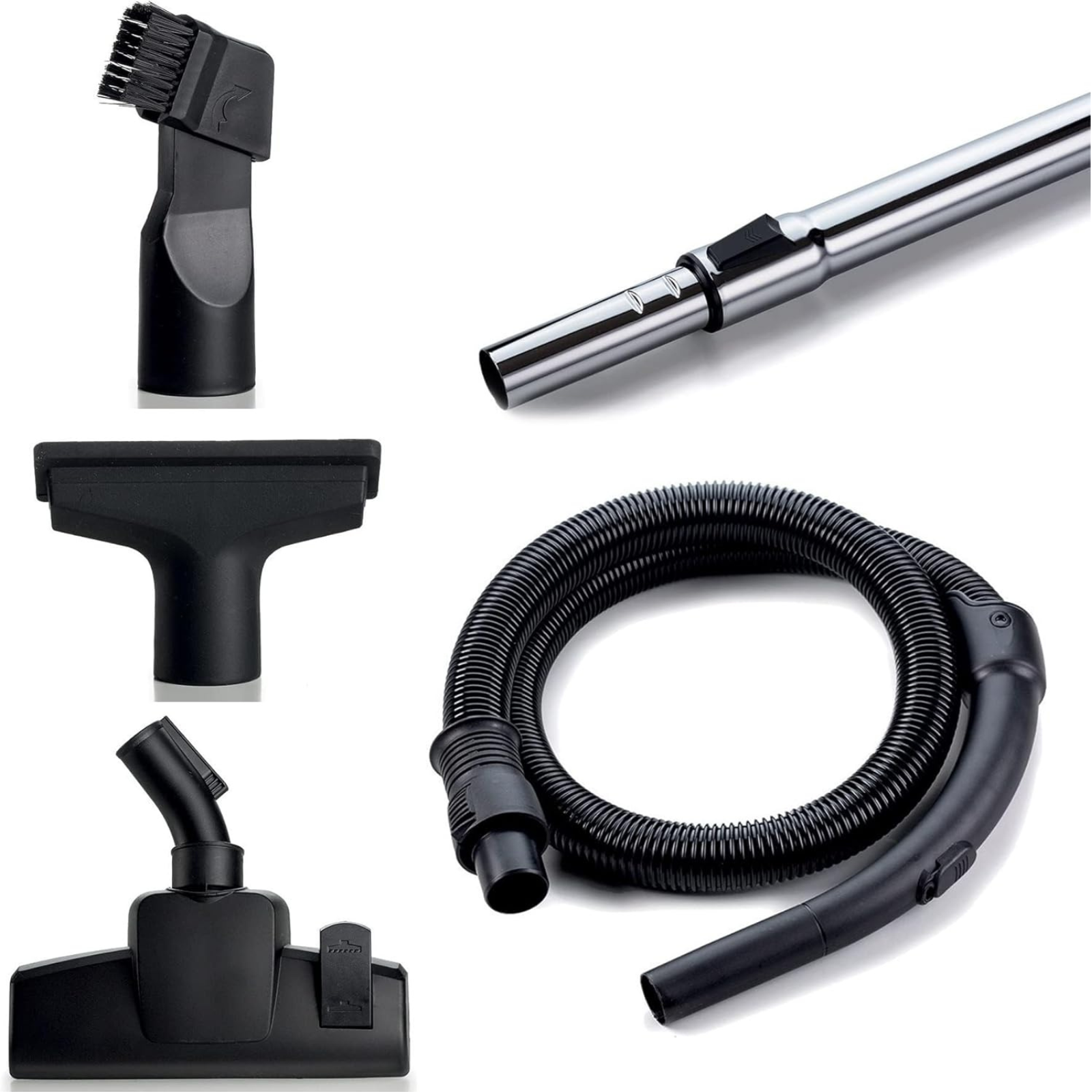 خرطوم مرن وأنبوب معدني: تأتي مع خرطوم متين وأنبوب تلسكوبي قابل للتعديل للوصول للأماكن المرتفعة وتحت الأثاث بكل راحة.