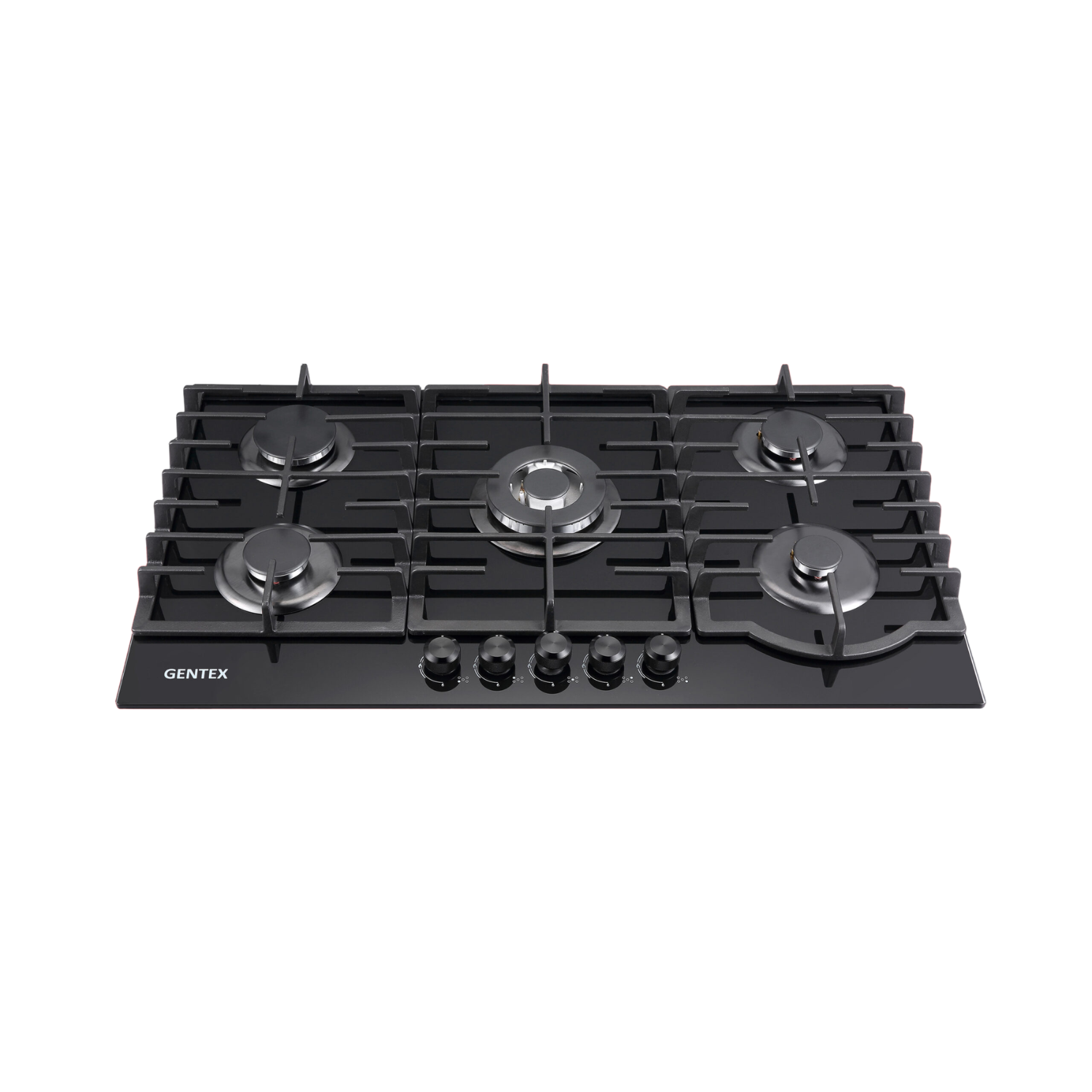 موقد غاز جنتكس GX-900-A مدمج – 5 رؤوس – سطح زجاج بلازما 8 مم – رأس توربو 3 حلقات
