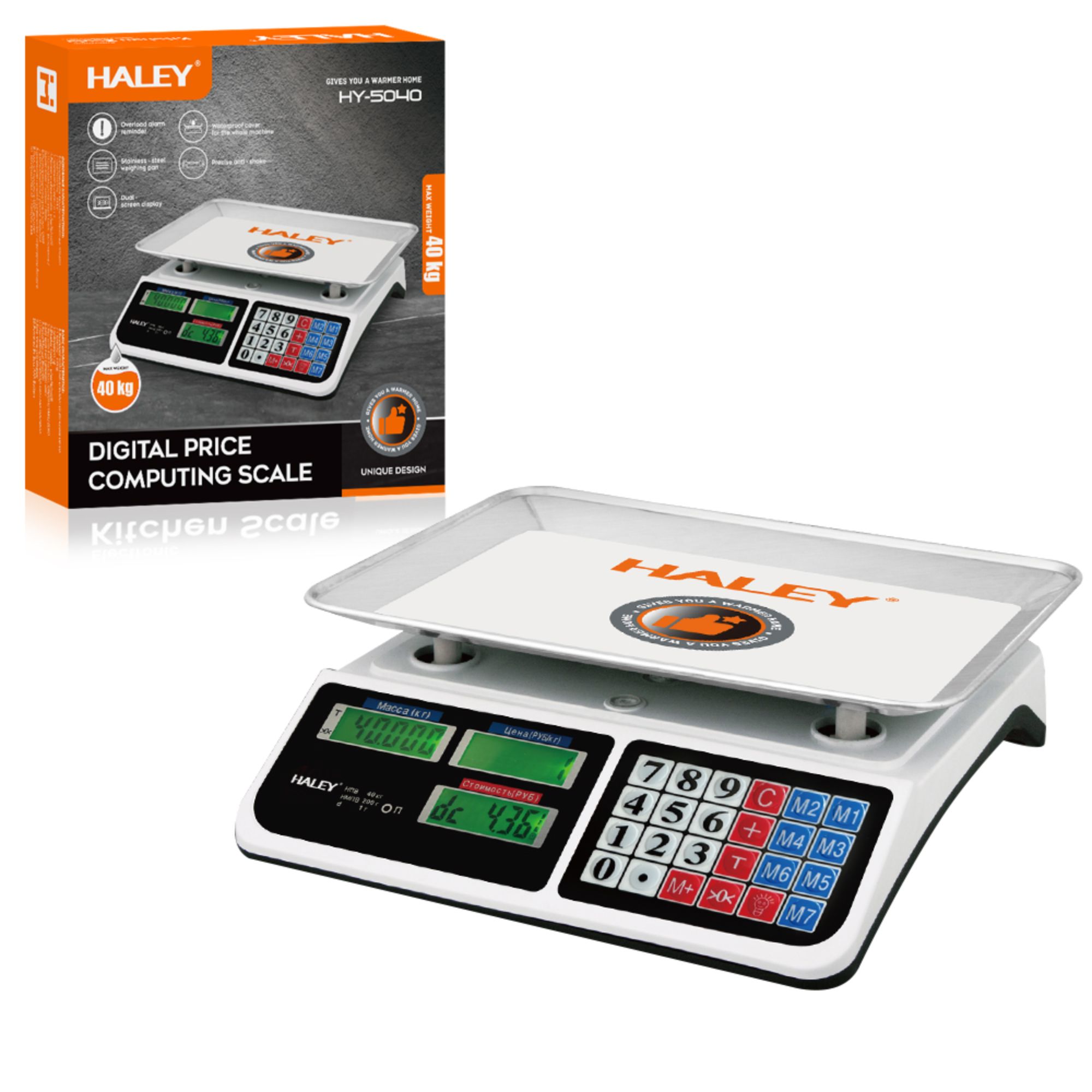 ميزان إلكتروني تجاري HALEY حتى 40 كغ – حساب السعر – شاشة LCD مزدوجة – صحن ستانلس ستيل – دقة عالية