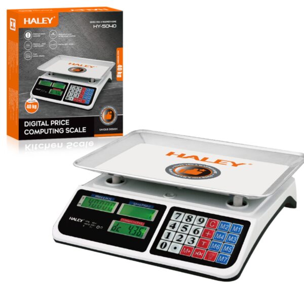 ميزان إلكتروني تجاري HALEY حتى 40 كغ – حساب السعر – شاشة LCD مزدوجة – صحن ستانلس ستيل – دقة عالية