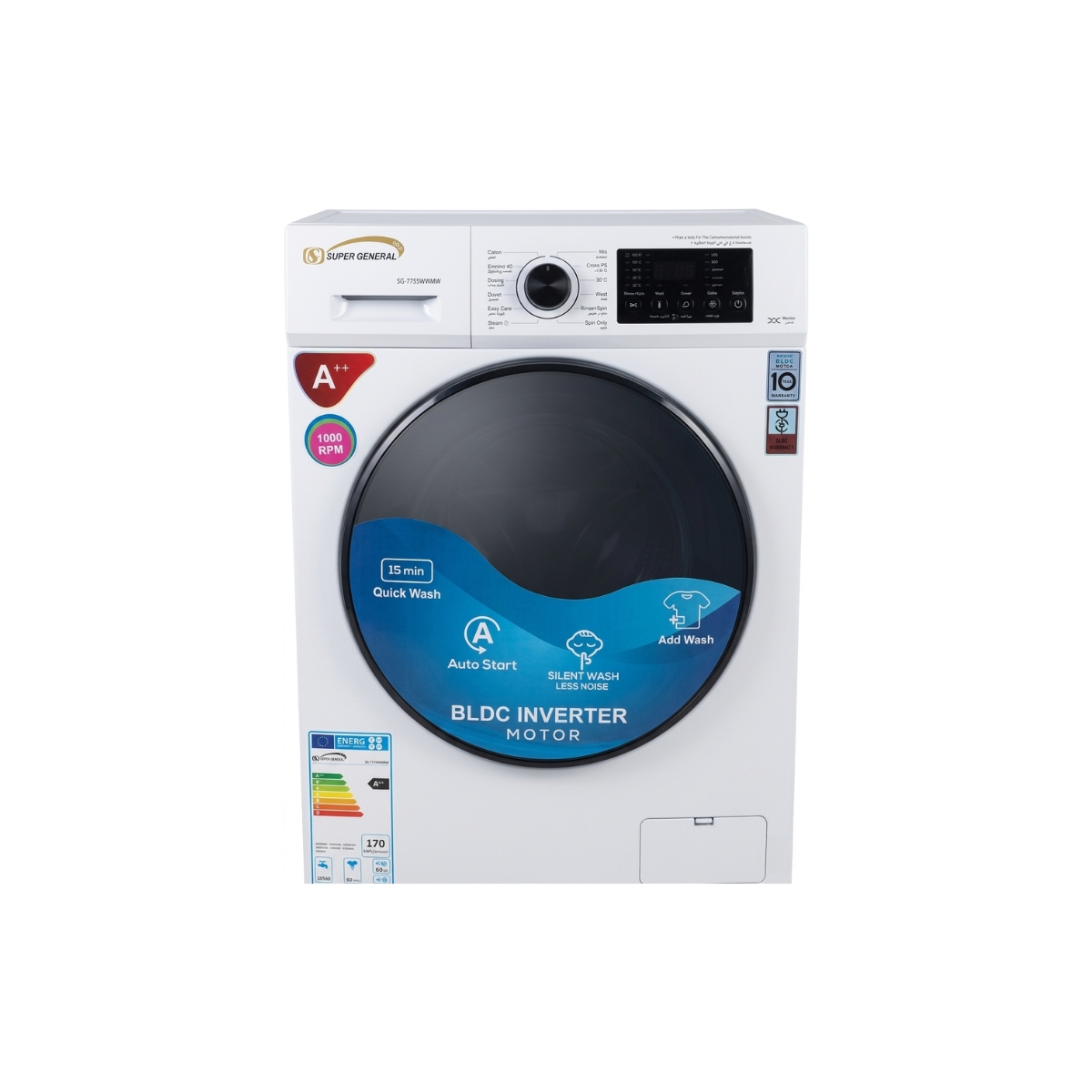 SG-7755WMW غسالة سوبر جنرال 5 كغ انفيرتر – 1000 دورة – شاشة رقمية – أبيض