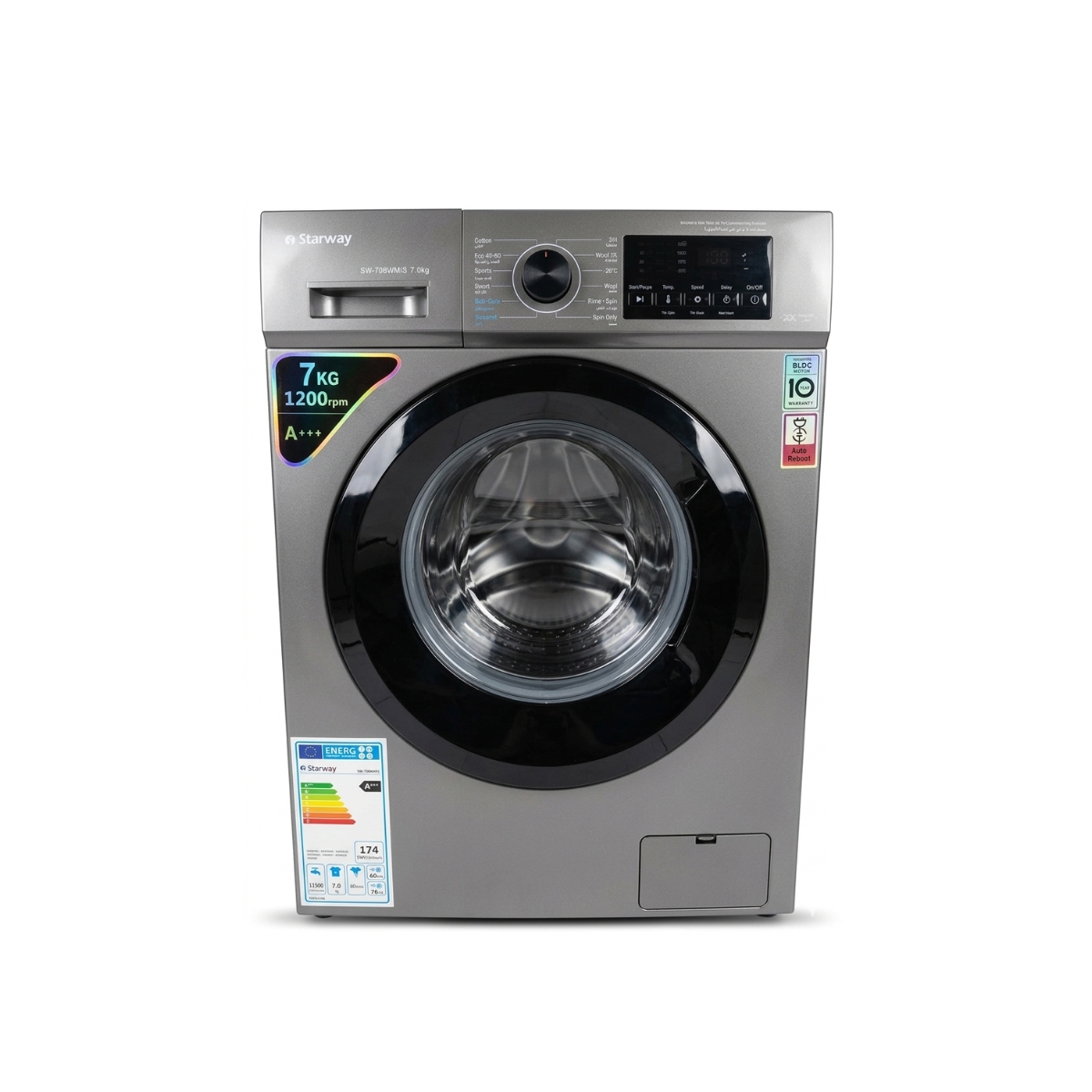 SW-708WMIS غسالة ستارواي 7 كغ انفيرتر – 1200 دورة – 12 برنامج – محرك BLDC – شاشة رقمية – فضي
