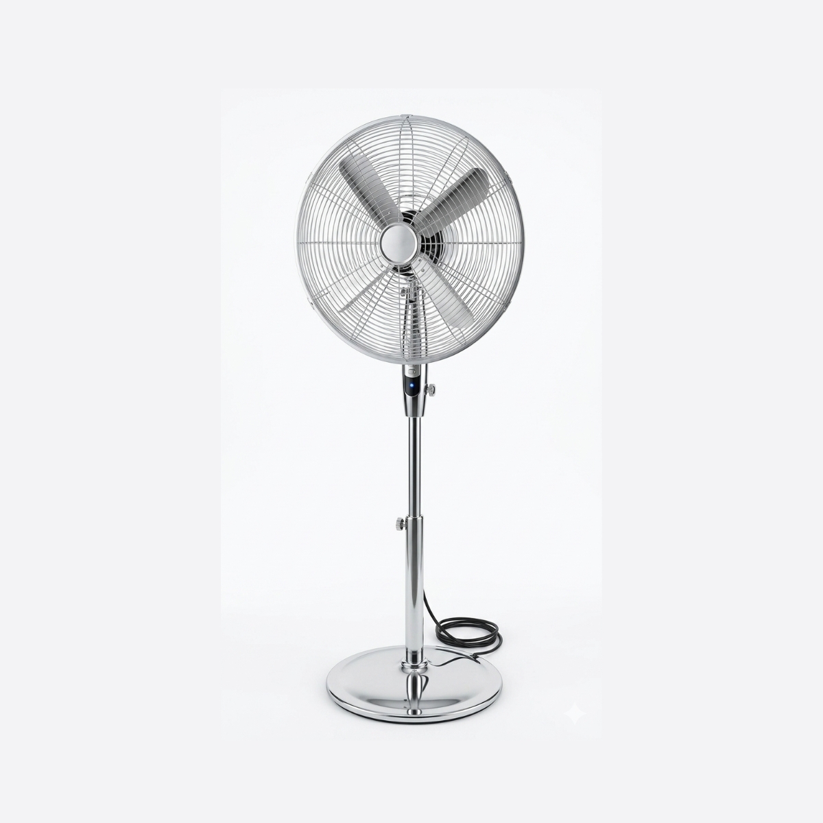 مروحة عامودية بهيكل معدني كامل يوفر متانة عالية وتحمل للاستخدام الطويل، تعمل باستطاعة 60 واط لتأمين تدفق هواء قوي وفعال.
